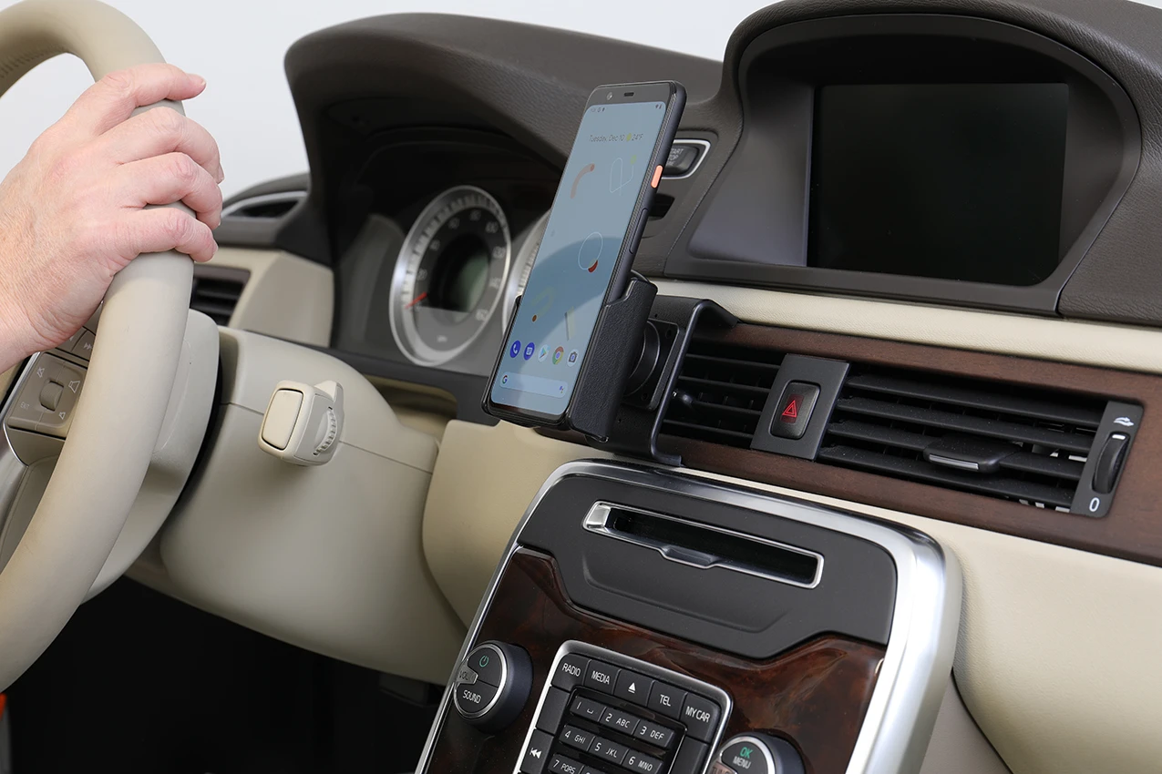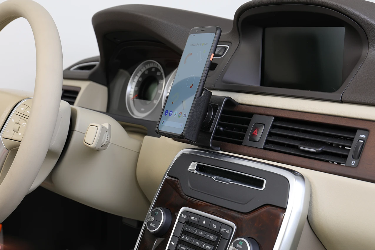 Keep your phone in a passive holder and you will always have it within easy sight and reach! Neat, discreet and convenient. Custom made with a perfect, firm fit. You have full access to the camera and all buttons and outlets when the device is in the holder. You can connect a charging cable or portable handsfree to the device when it is in the holder.