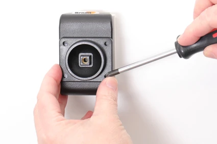 Place the holder over the attaching plate so the screw fits in the hole in the tilt swivel and screw it into place. Tighten the screw so the holder is firmly in place, but still can be adjusted.