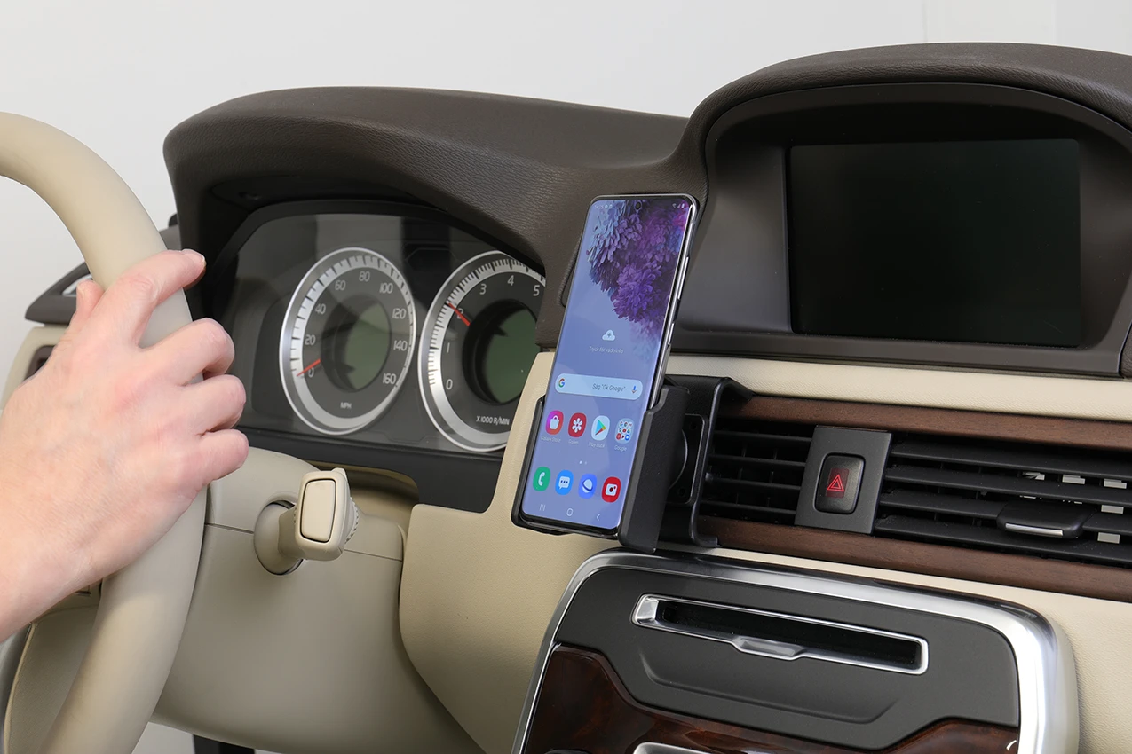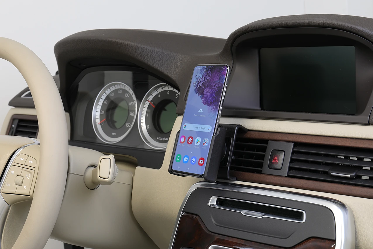 Keep your phone in a passive holder and you will always have it within easy sight and reach! Neat, discreet and convenient. Custom made with a perfect, firm fit. You have full access to the camera and all buttons and outlets when the device is in the holder. You can connect a charging cable or portable handsfree to the device when it is in the holder.