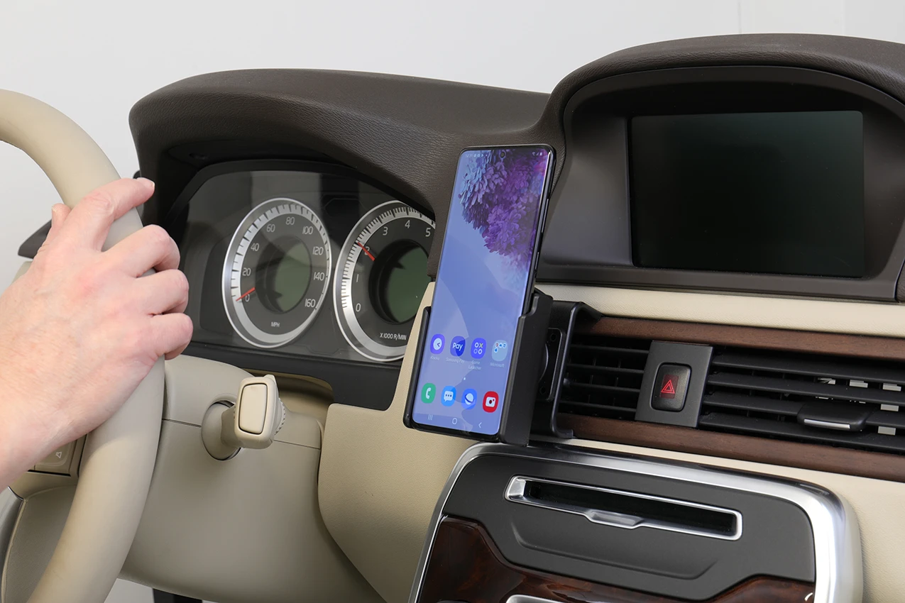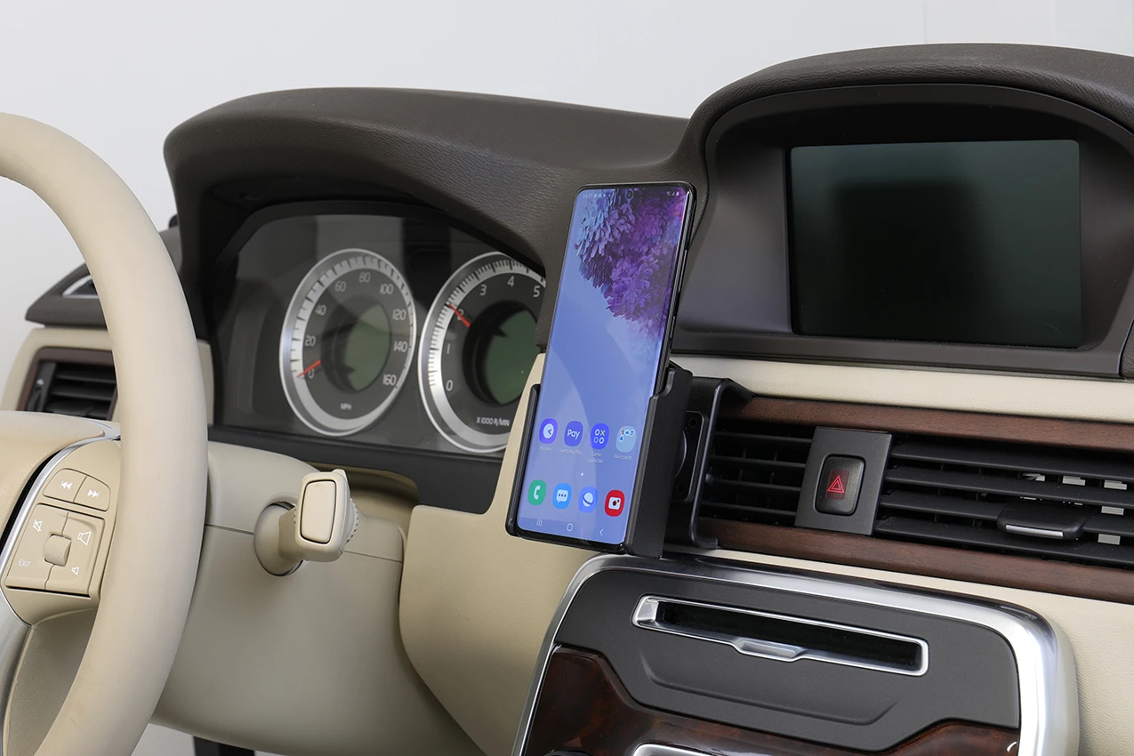 Keep your phone in a passive holder and you will always have it within easy sight and reach! Neat, discreet and convenient. Custom made with a perfect, firm fit. You have full access to the camera and all buttons and outlets when the device is in the holder. You can connect a charging cable or portable handsfree to the device when it is in the holder.