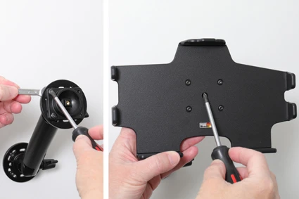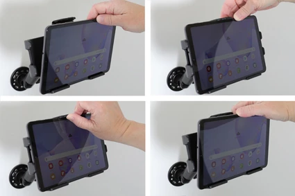 An installation of a tablet onto a vehicle’s dashboard is always done on the customer’s own responsibility. Brodit recommends to use tablets on the car’s headrest, installed onto a Brodit headrest mount.