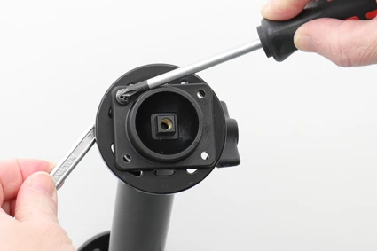 Place the holder over the attaching plate so the screw fits in the hole in the tilt swivel. Tighten the screw until the holder is firmly in place, but still can be adjusted.