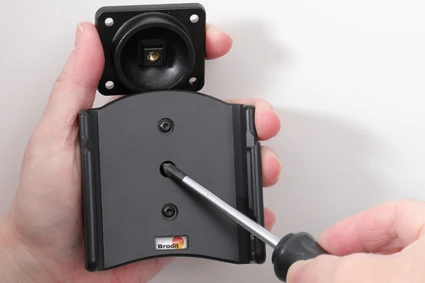 The holder is equipped with a tilt swivel so you can easily adjust the angle for better viewing, or switch between portrait and landscape mode. Tilts 17° and swivels 360°. Mounting plate 42x50 mm with 4 mm AMPS-holes. Made of high grade black ABS/Acetal plastic. Color: black. Made in Sweden. Attach onto a ProClip mounting platform.