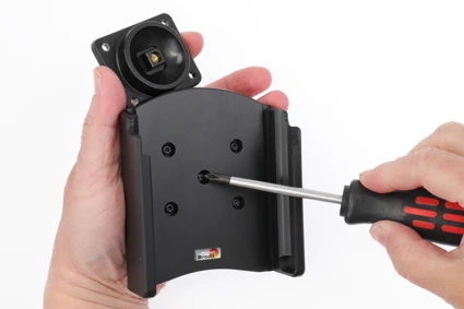The holder is equipped with a tilt swivel so you can easily adjust the angle for better viewing. Tilts 17° and swivels 360°. Mounting plate 42x50 mm with 4 mm AMPS-holes. Made of high grade black ABS/Acetal plastic. Made in Sweden. Attach onto a ProClip mounting platform or Pedestal mount.