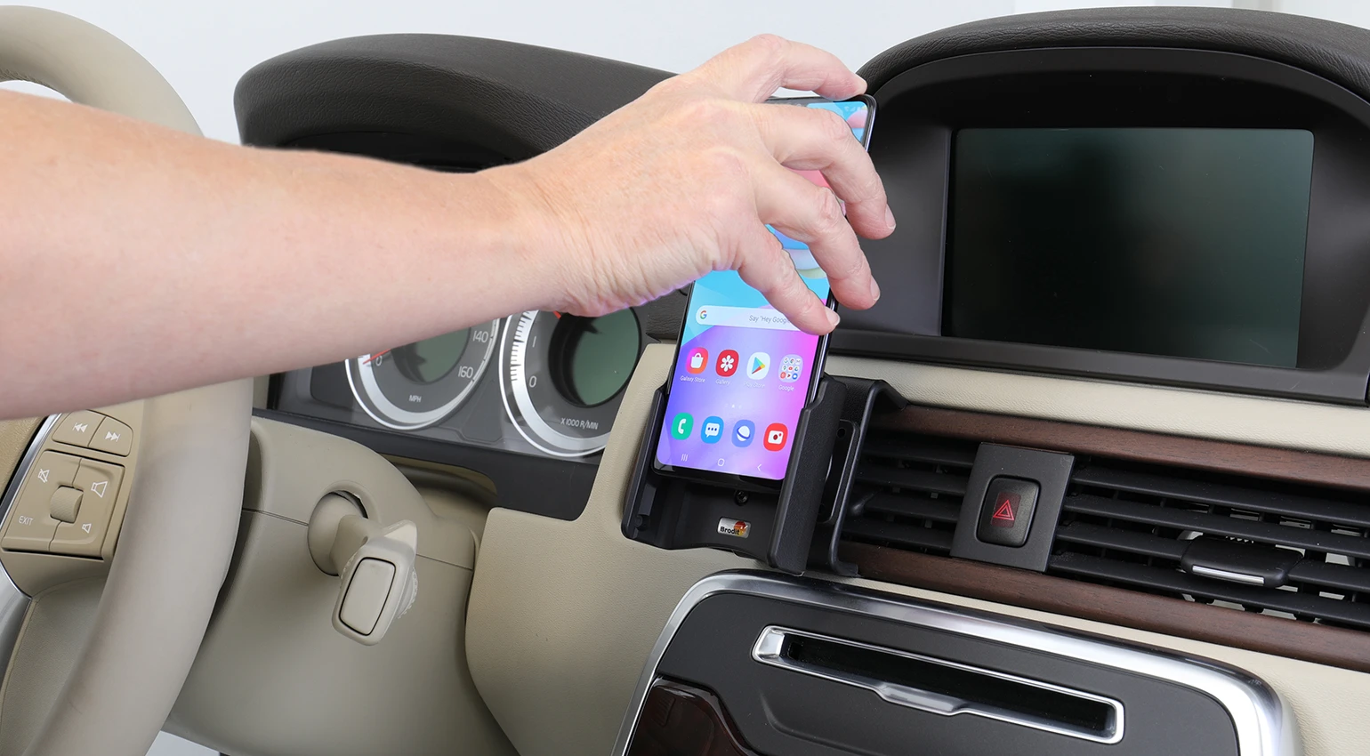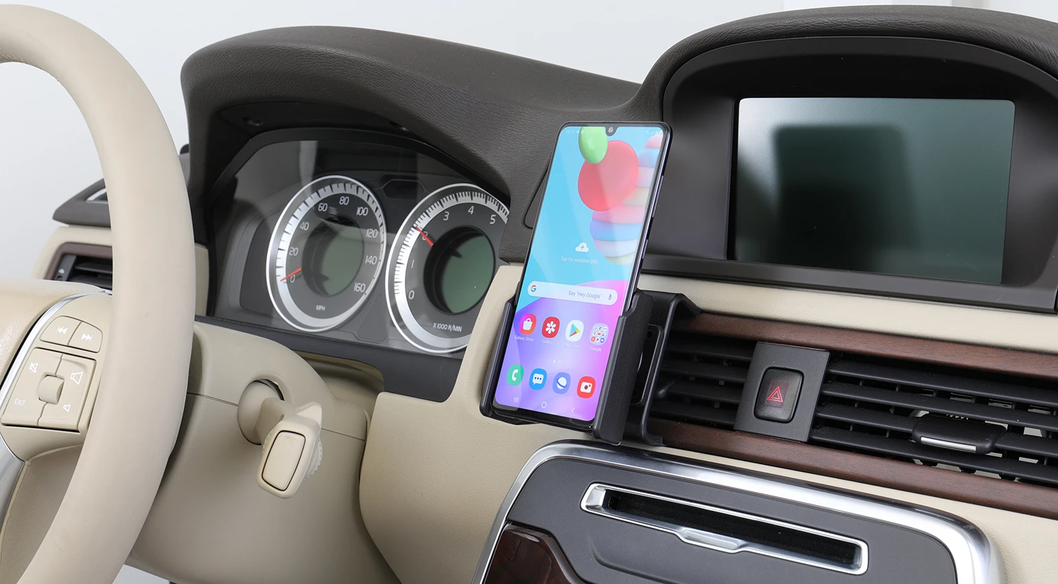 Keep your phone in a passive holder and you will always have it within easy sight and reach! Neat, discreet and convenient. Custom made with a perfect, firm fit. You have full access to the camera and all buttons and outlets when the device is in the holder. You can connect a charging cable or portable handsfree to the device when it is in the holder.