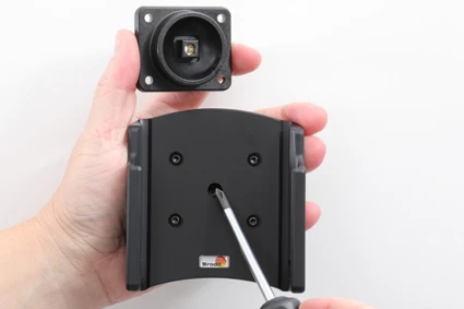 The holder is equipped with a tilt swivel so you can easily adjust the angle for better viewing, or switch between portrait and landscape mode. Tilts 17° and swivels 360°. Mounting plate 42x50 mm with 4 mm AMPS-holes. Made of high grade black ABS plastic. Color: black. Made in Sweden. Attach onto a high strength ProClip Mounting Platform or a Pedestal Mount.
