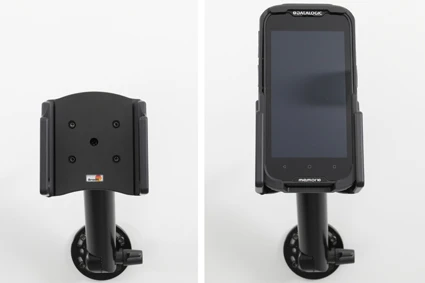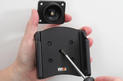The holder is equipped with a tilt swivel so you can easily adjust the angle for better viewing, or switch between portrait and landscape mode. Tilts 17° and swivels 360°. Mounting plate 42x50 mm with 4 mm AMPS-holes. Made of high grade black ABS plastic. Color: black. Made in Sweden. Attach onto a high strength ProClip Mounting Platform or a Pedestal Mount.