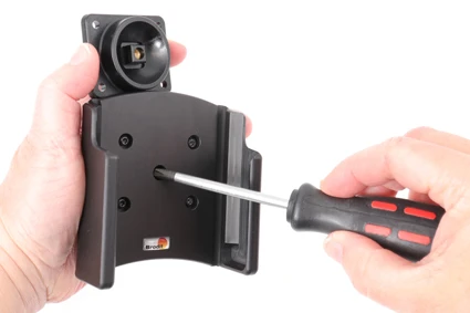 The holder is equipped with a tilt swivel so you can easily adjust the angle for better viewing, or switch between portrait and landscape mode. Tilts 17° and swivels 360°. Mounting plate 42x50 mm with 4 mm AMPS-holes. Made of high grade black ABS plastic. Color: black. Made in Sweden. Attach onto a high strength ProClip Mounting Platform or a Pedestal Mount.