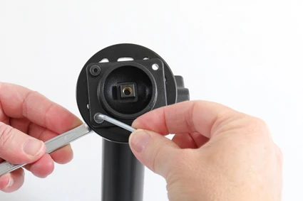 Place the holder over the attaching plate so the screw fits in the hole in the tilt swivel. Tighten the screw until the holder is firmly in place, but still can be adjusted.
