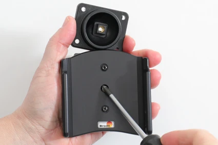 The holder is equipped with a tilt swivel so you can easily adjust the angle for better viewing, or switch between portrait and landscape mode. Tilts 17° and swivels 360°. Mounting plate 42x50 mm with 4 mm AMPS-holes. Made of high grade black ABS/Acetal plastic. Color: black. Made in Sweden. Attach onto a ProClip mounting platform.