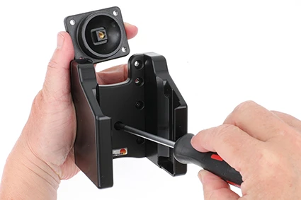 With your PDA in a passive holder attached onto the dashboard it is always within easy reach -safe and convenient. The holder is mounted onto a tilt swivel so it is adjustable for avoiding light reflection on the screen. It is easy to put the PDA in the holder, and to take it out of the holder. You can connect e.g. a charging cable to the PDA when it is in the holder. Attach onto a Pedestal Mount.