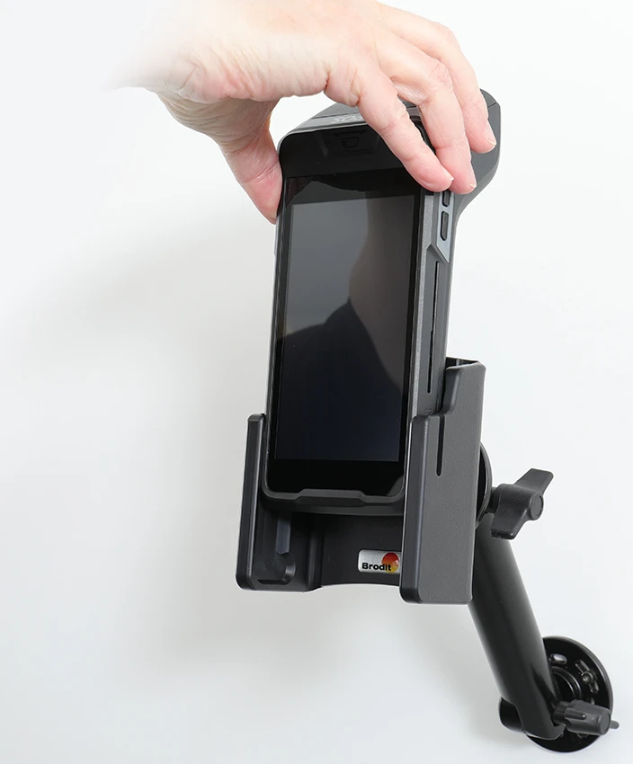 The holder is equipped with a tilt swivel so you can easily adjust the angle for better viewing, or switch between portrait and landscape mode. Tilts 17° and swivels 360°. Mounting plate 42x50 mm with 4 mm AMPS-holes. Made of high grade black ABS/Acetal plastic. Color: black. Made in Sweden. Attach onto a ProClip Mounting Platform or a Pedestal Mount.