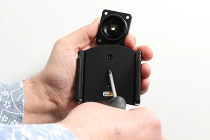 The holder is equipped with a tilt swivel so you can easily adjust the angle for better viewing, or switch between portrait and landscape mode. Tilts 17° and swivels 360°. Mounting plate 42x50 mm with 4 mm AMPS-holes. Made of high grade black ABS/Acetal plastic. Color: black. Made in Sweden. Attach onto a ProClip Mounting Platform or a Pedestal Mount.