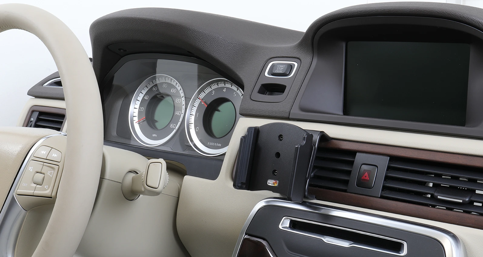 Keep your unit in a passive holder and you will always have it within easy sight and reach! Neat, discreet and convenient. Custom made with a perfect, firm fit. You have full access to the camera and all buttons and outlets when the device is in the holder. You can connect a charging cable or portable handsfree to the device when it is in the holder.