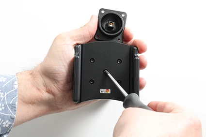 The holder is equipped with a tilt swivel so you can easily adjust the angle for better viewing, or switch between portrait and landscape mode. Tilts 17° and swivels 360°. Mounting plate 42x50 mm with 4 mm AMPS-holes. Made of high grade black ABS/Acetal plastic. Color: black. Made in Sweden. Attach onto a ProClip Mounting Platform or a Pedestal Mount.