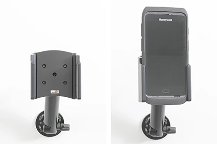 The holder is equipped with a tilt swivel so you can easily adjust the angle for better viewing, or switch between portrait and landscape mode. Tilts 17° and swivels 360°. Mounting plate 42x50 mm with 4 mm AMPS-holes. Made of high grade black ABS/Acetal plastic. Color: black. Made in Sweden. Attach onto a ProClip Mounting Platform or a Pedestal Mount.