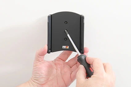 Place the holder over the attaching plate so the screw fits in the hole in the tilt swivel and screw it into place. Tighten the screw so the holder is firmly in place, but still can be adjusted.
