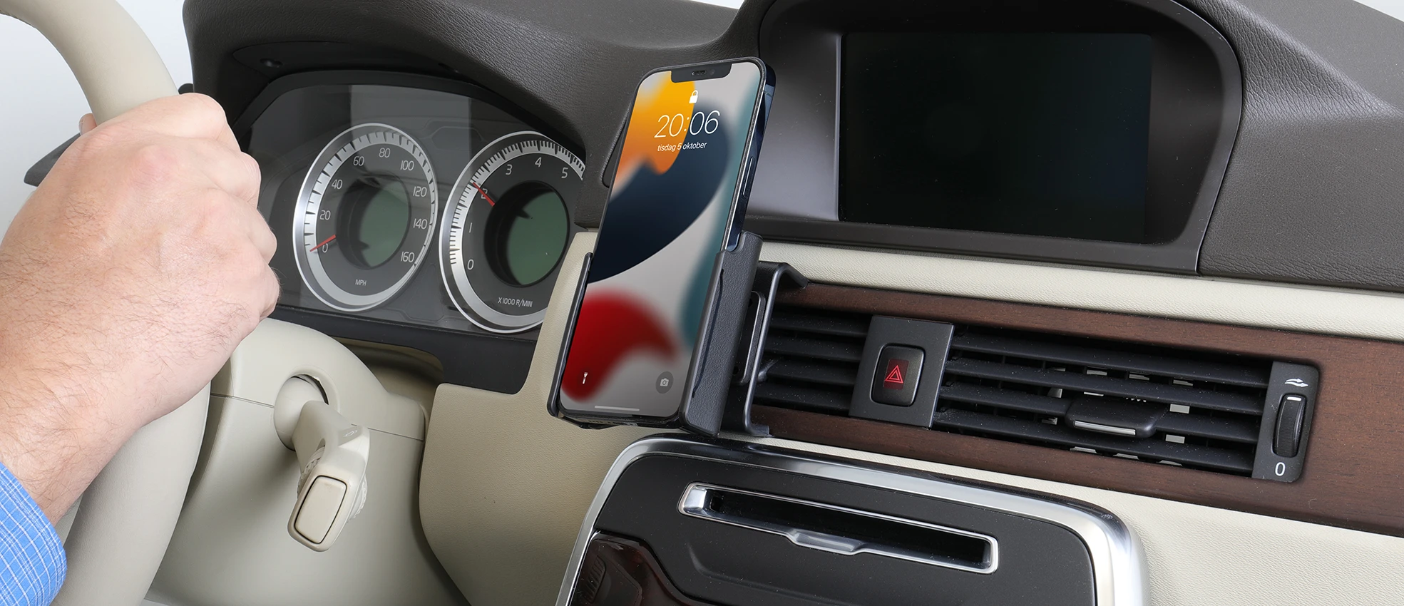 Keep your phone in a passive holder and you will always have it within easy sight and reach! Neat, discreet and convenient. Custom made with a perfect, firm fit. You have full access to the camera and all buttons and outlets when the device is in the holder. You can connect a charging cable or portable handsfree to the device when it is in the holder.