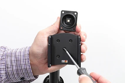 Loosen the screw in the center of the holder so you can remove the tilt swivel attaching plate on the back.