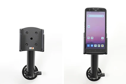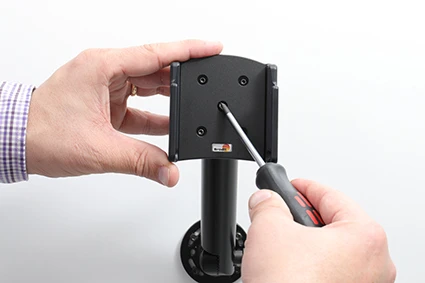 The holder is equipped with a tilt swivel so you can easily adjust the angle for better viewing, or switch between portrait and landscape mode. Tilts 17° and swivels 360°. Mounting plate 42x50 mm with 4 mm AMPS-holes. Made of high grade black ABS/Acetal plastic. Color: black. Made in Sweden. Attach onto a ProClip Mounting Platform or a Pedestal Mount.