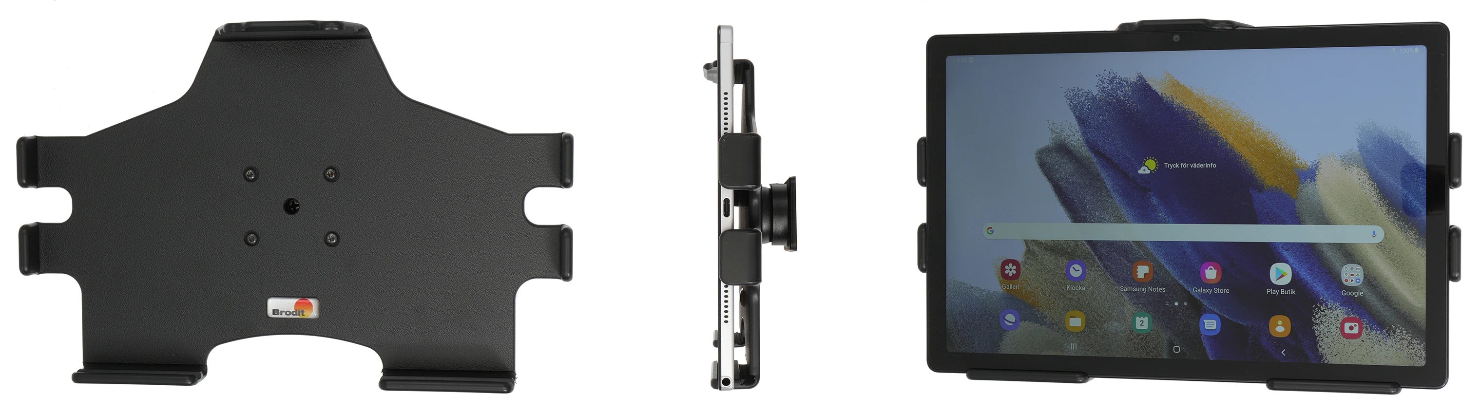 An installation of a tablet onto a vehicle’s dashboard is always done on the customer’s own responsibility. Brodit recommends to use tablets on the car’s headrest, installed onto a Brodit headrest mount.