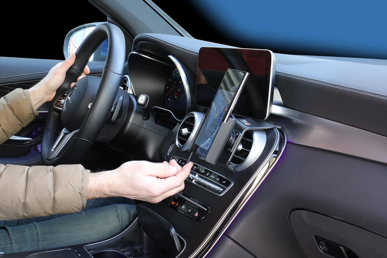 Keep your phone in a passive holder and you will always have it within easy sight and reach! Neat, discreet and convenient. Custom made with a perfect, firm fit. You have full access to the camera and all buttons and outlets when the device is in the holder. You can connect a charging cable or portable handsfree to the device when it is in the holder.