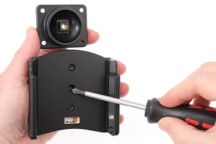The holder is equipped with a tilt swivel so you can easily adjust the angle for better viewing, or switch between portrait and landscape mode. Tilts 17° and swivels 360°. Mounting plate 42x50 mm with 4 mm AMPS-holes. Made of high grade black ABS/Acetal plastic. Color: black. Made in Sweden. Attach onto a ProClip mounting platform.