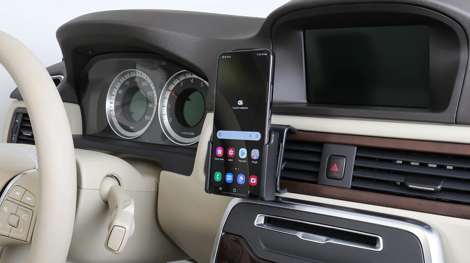 Keep your phone in a passive holder and you will always have it within easy sight and reach! Neat, discreet and convenient. Custom made with a perfect, firm fit. You have full access to the camera and all buttons and outlets when the device is in the holder. You can connect a charging cable or portable handsfree to the device when it is in the holder.