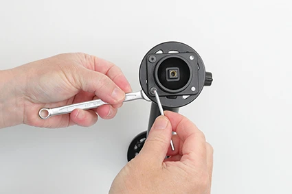 Place the holder over the attaching plate so the screw fits in the hole in the tilt swivel and screw it into place. Tighten the screw so the holder is firmly in place, but still can be adjusted.