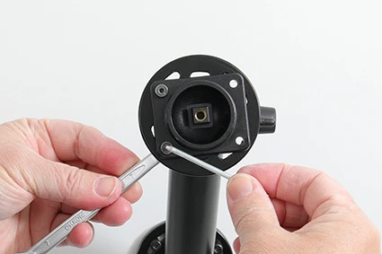 Place the holder over the attaching plate so the screw fits in the hole in the tilt swivel. Tighten the screw so the holder is firmly in place, but still can be adjusted.