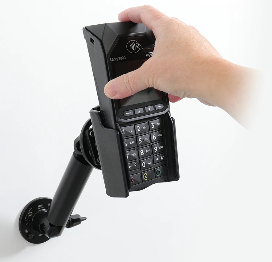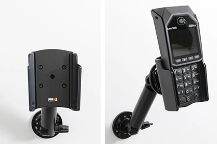 The holder is equipped with a tilt swivel so you can easily adjust the angle for better viewing and operating. Tilts 17° and swivels 360°. Mounting plate 42x50 mm with 4 mm AMPS-holes. Made of high grade black ABS plastic. Color: black. Manufactured in Sweden. Attach onto a Pedestal Mount or ProClip mounting platform.