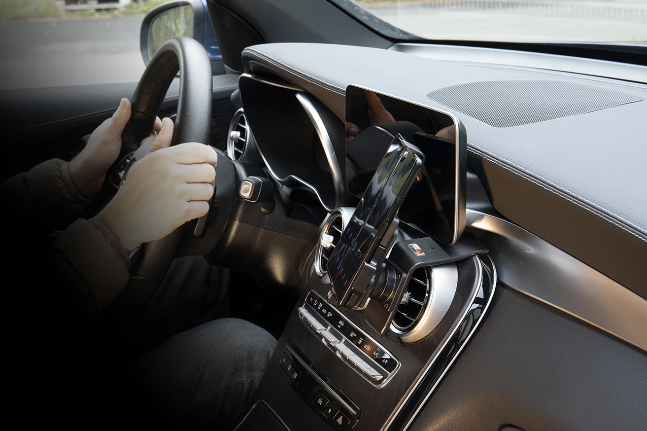 Keep your device in a holder; firmly in place and easy accessible while driving! Safe, efficient and convenient! The holder is customized with a perfect fit for bare device (not for case). You have full access to the camera, buttons and ports while in use. Easy one-hand insertion and removal.