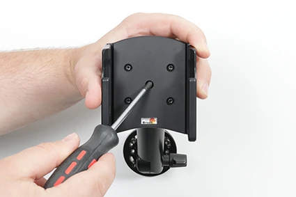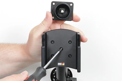 The holder is equipped with a tilt swivel so you can easily adjust the angle for better viewing, or switch between portrait and landscape mode. Tilts 17° and swivels 360°. Mounting plate 42x50 mm with 4 mm AMPS-holes. Made of high grade black ABS/Acetal plastic. Made in Sweden. Attach onto a Pedestal Mount or an ProClip mounting platform.
