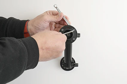 Place the holder over the attaching plate so the screw fits in the hole in the tilt swivel. Tighten the screw so the holder is firmly in place, but still can be adjusted.