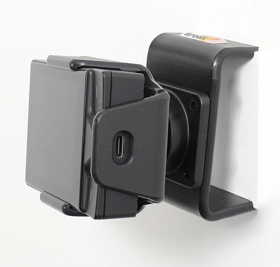 When keeping your Yanosik RS in a passive holder, it is always within easy reach. A portable charging cable can be connected to the device when it is in the holder. The holder is equipped with a tilt swivel so you can easily adjust the angle for better viewing, or switch between portrait and landscape mode. Tilts 17° and swivels 360°. Mounting plate 42x50 mm with 4 mm AMPS-holes. Made of high grade black ABS/Acetal plastic. Color: black. Made in Sweden. Attach onto a ProClip mounting platform.