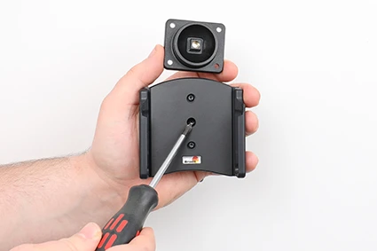 The holder is equipped with a tilt swivel so you can easily adjust the angle for better viewing, or switch between portrait and landscape mode. Tilts 17° and swivels 360°. Mounting plate 42x50 mm with 4 mm AMPS-holes. Made of high grade black ABS/Acetal plastic. Color: black. Made in Sweden. Attach onto a ProClip mounting platform.