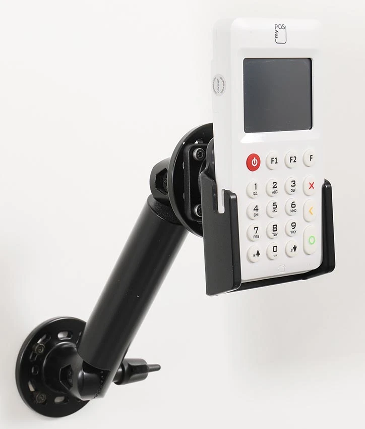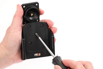 The holder is equipped with a tilt swivel so you can easily adjust the angle for better viewing. Tilts 17° and swivels 360°. Mounting plate 42x50 mm with 4 mm AMPS-holes. Made of high grade black ABS plastic. Color: black. Made in Sweden. Attach onto a ProClip Mounting Platform or a Pedestal Mount.