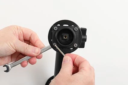 Place the holder over the attaching plate so the screw fits in the hole in the tilt swivel and screw it into place. Tighten the screw so the holder is firmly in place, but still can be adjusted.