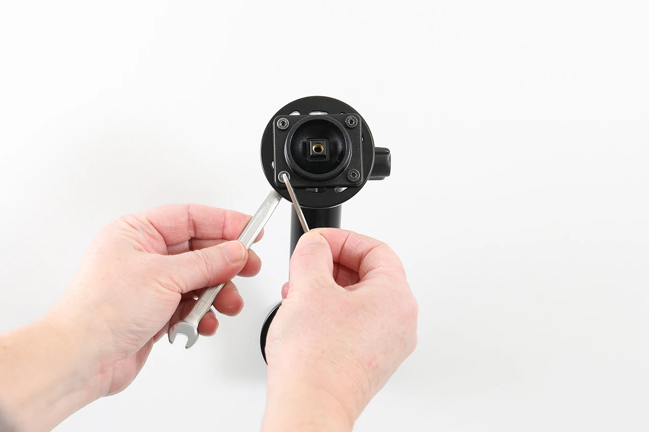 Place the holder over the attaching plate so the screw fits in the hole in the tilt swivel and screw it into place. Tighten the screw so the holder is firmly in place, but still can be adjusted.
