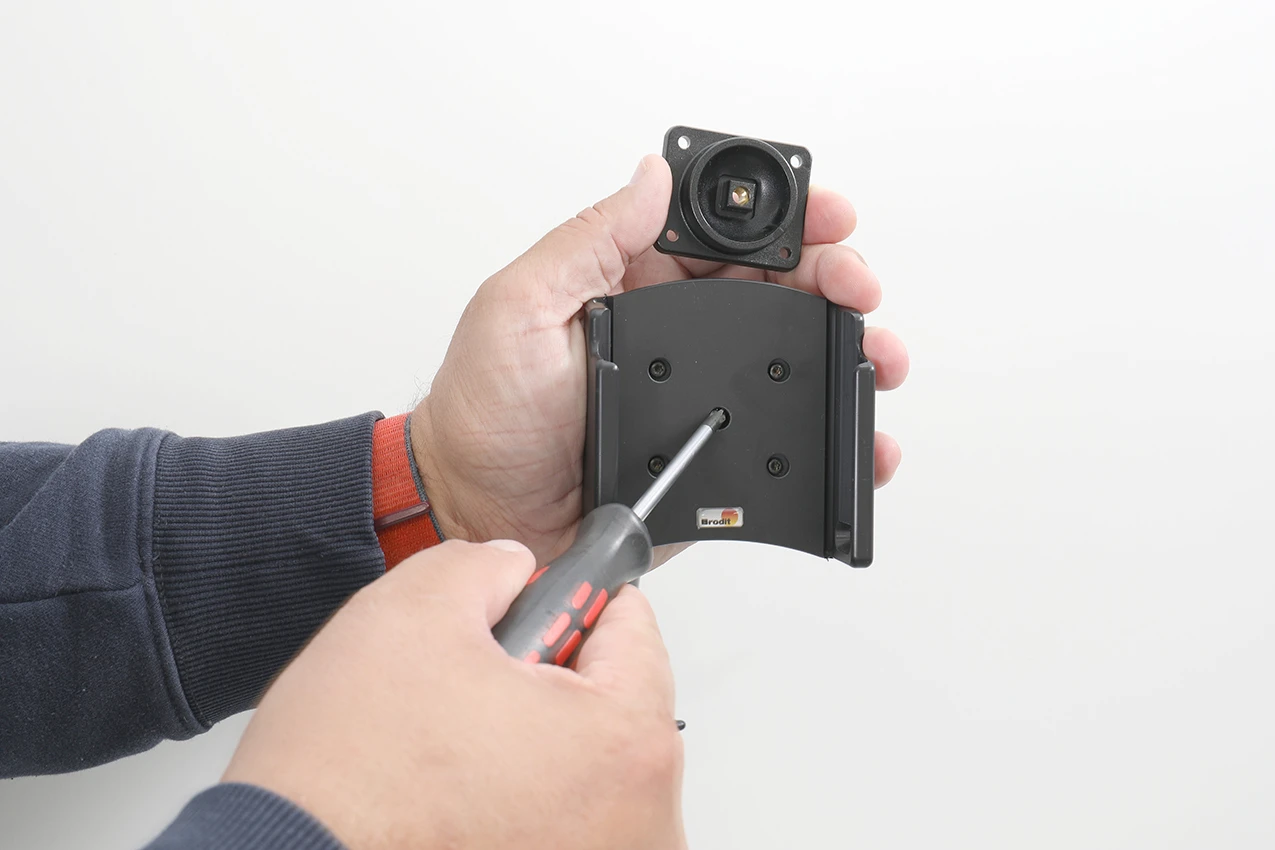 The holder is equipped with a tilt swivel so you can easily adjust the angle for better viewing, or switch between portrait and landscape mode. Tilts 17° and swivels 360°. Mounting plate 42x50 mm with 4 mm AMPS-holes. Made of high grade black ABS/Acetal plastic. Color: black. Made in Sweden. Attach onto a ProClip Mounting Platform or a Pedestal Mount.