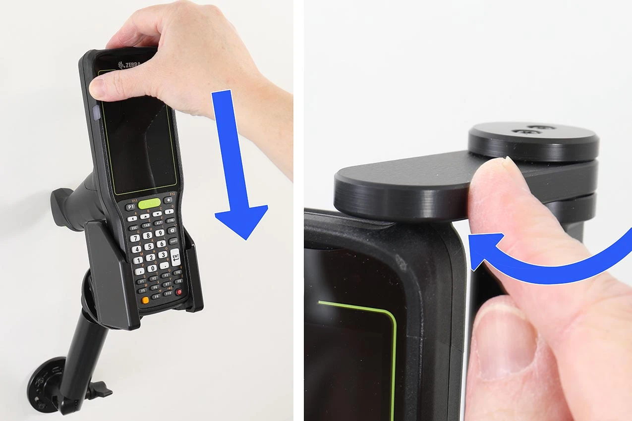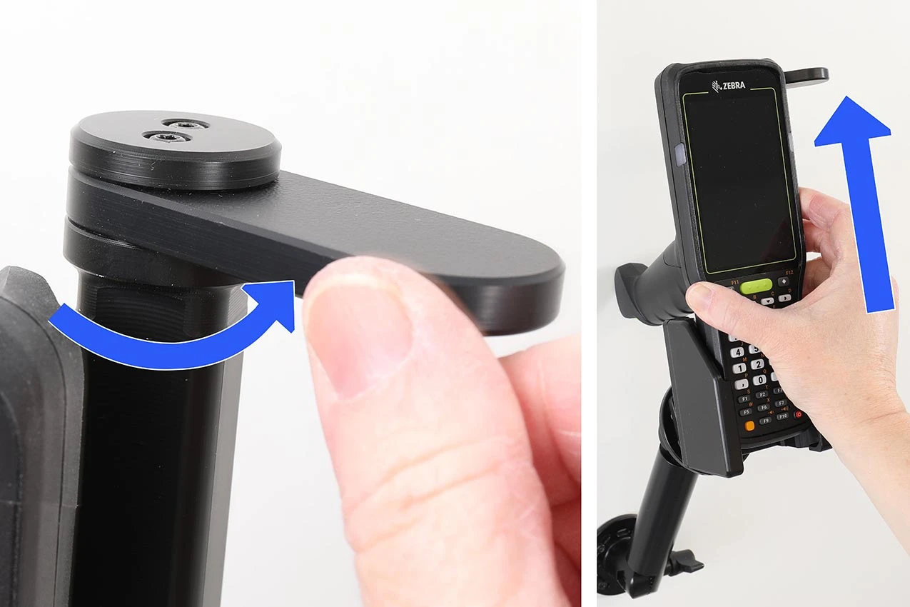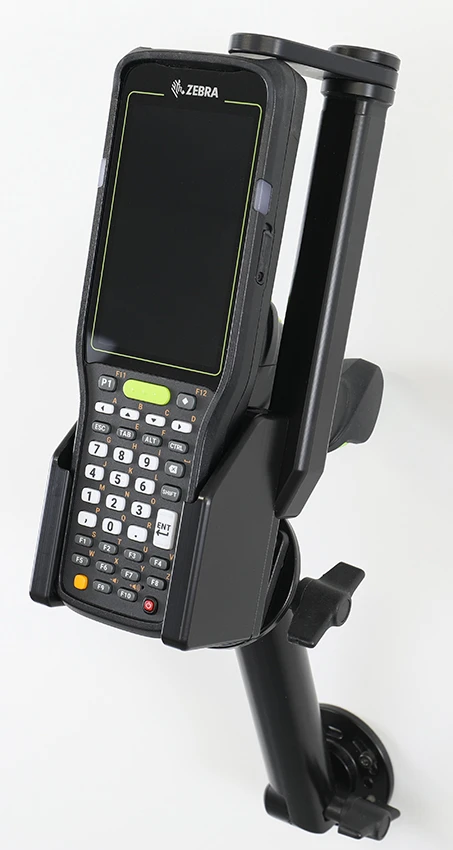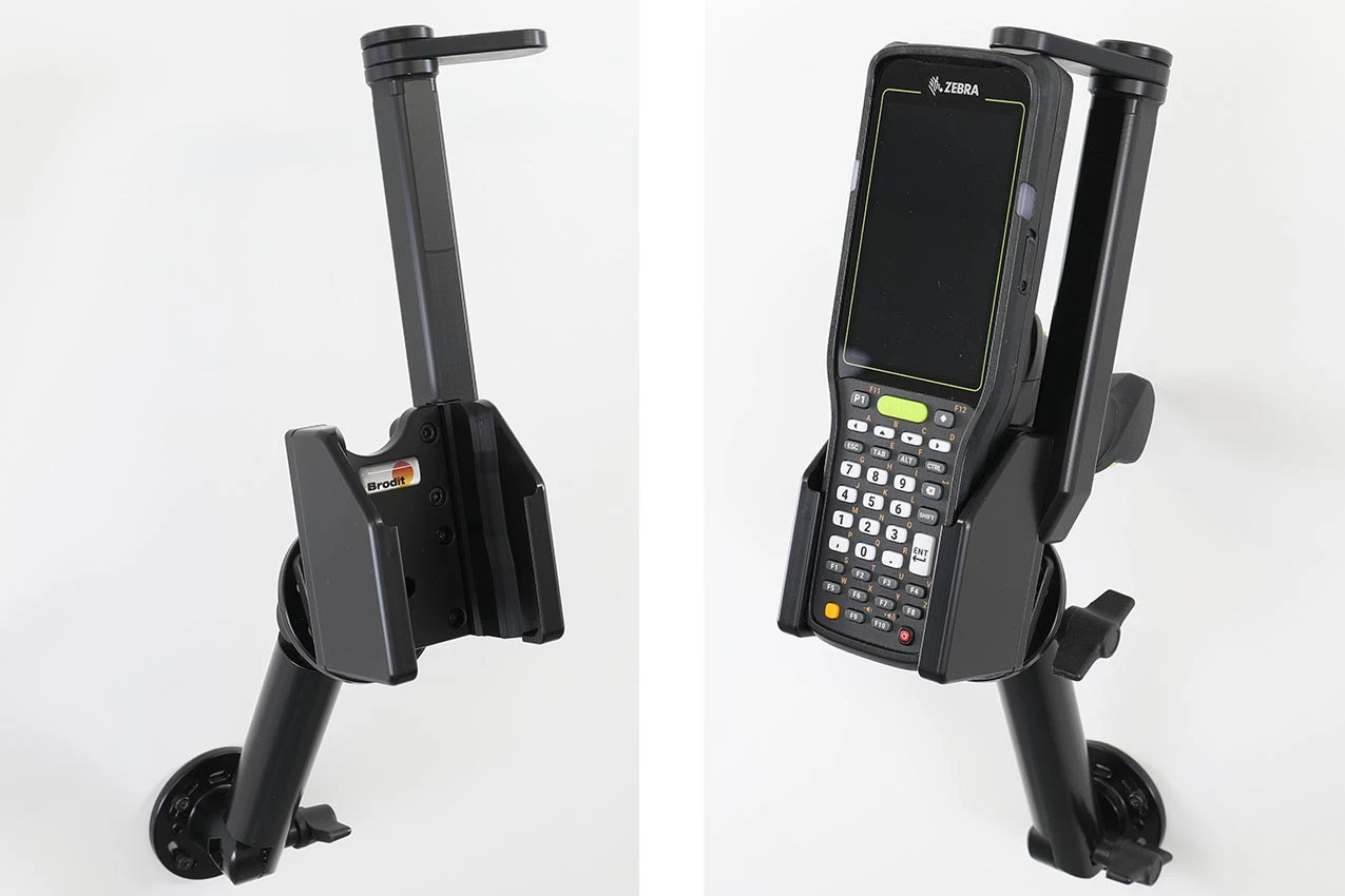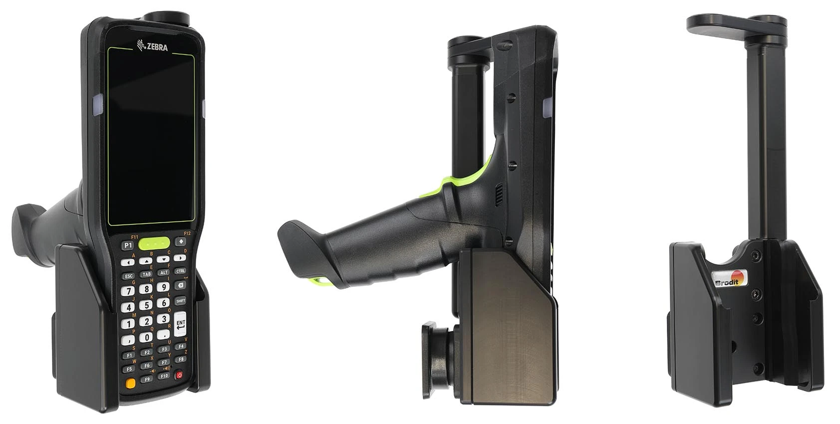 The choice for you who want to have you PDA firmly in place, properly attached and still within easy reach. The holder has a strong, robust design to withstand rough handling in professional use. The swiveling top part keeps your device extra securely in place in the holder, it "locks" the device in the holder so that it can not shake the least. It is easy to place the PDA in the holder, and to take it with you when leaving the vehicle. You can attach e.g. a charging cable to the device while in the holder. The holder is equipped with a tilt swivel so you can easily adjust the angle for good viewing.