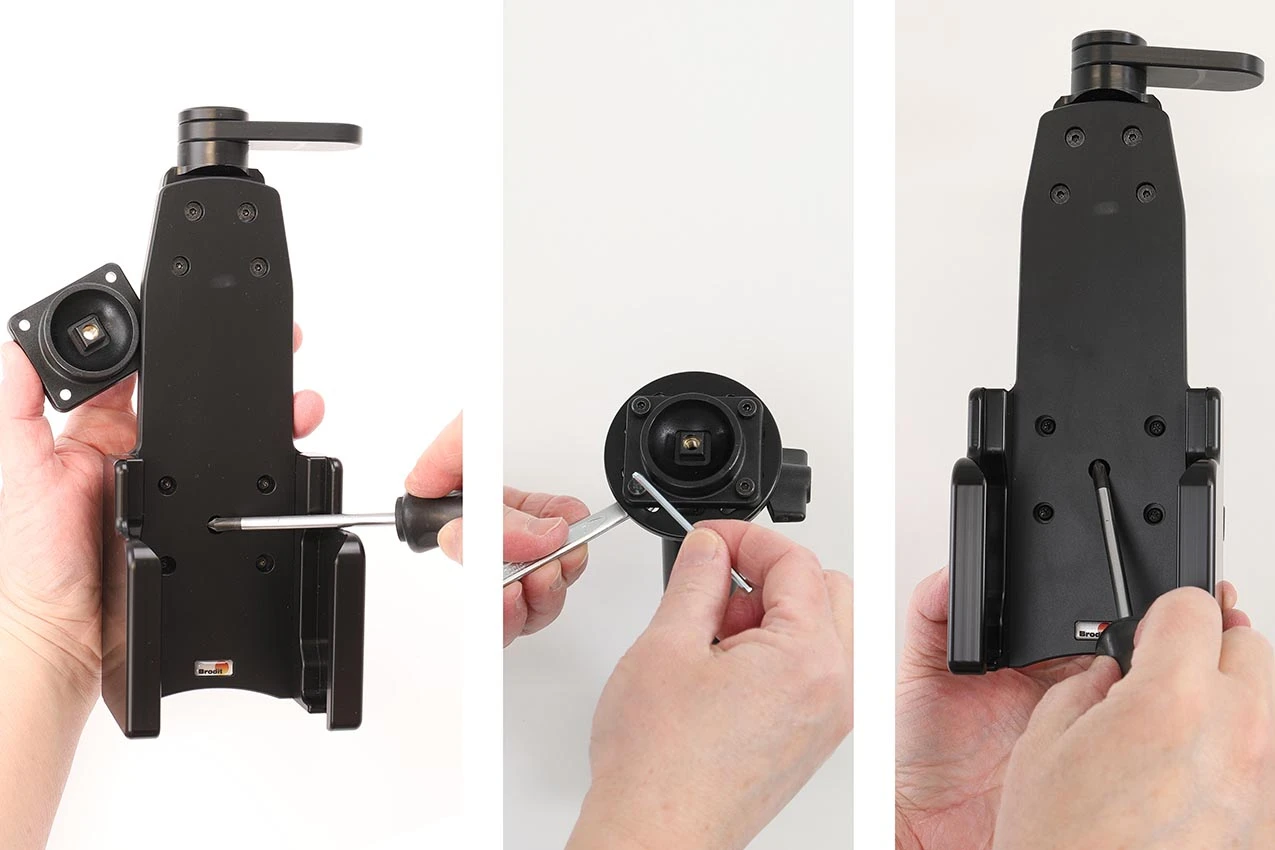 The holder is equipped with a tilt swivel so you can easily adjust the angle of the device. Tilts 17° and swivels 360°. Mounting plate 42x50 mm with AMPS-holes. Made of high grade black ABS/Acetal plastic. Made in Sweden. Attach onto a Pedestal Mount.