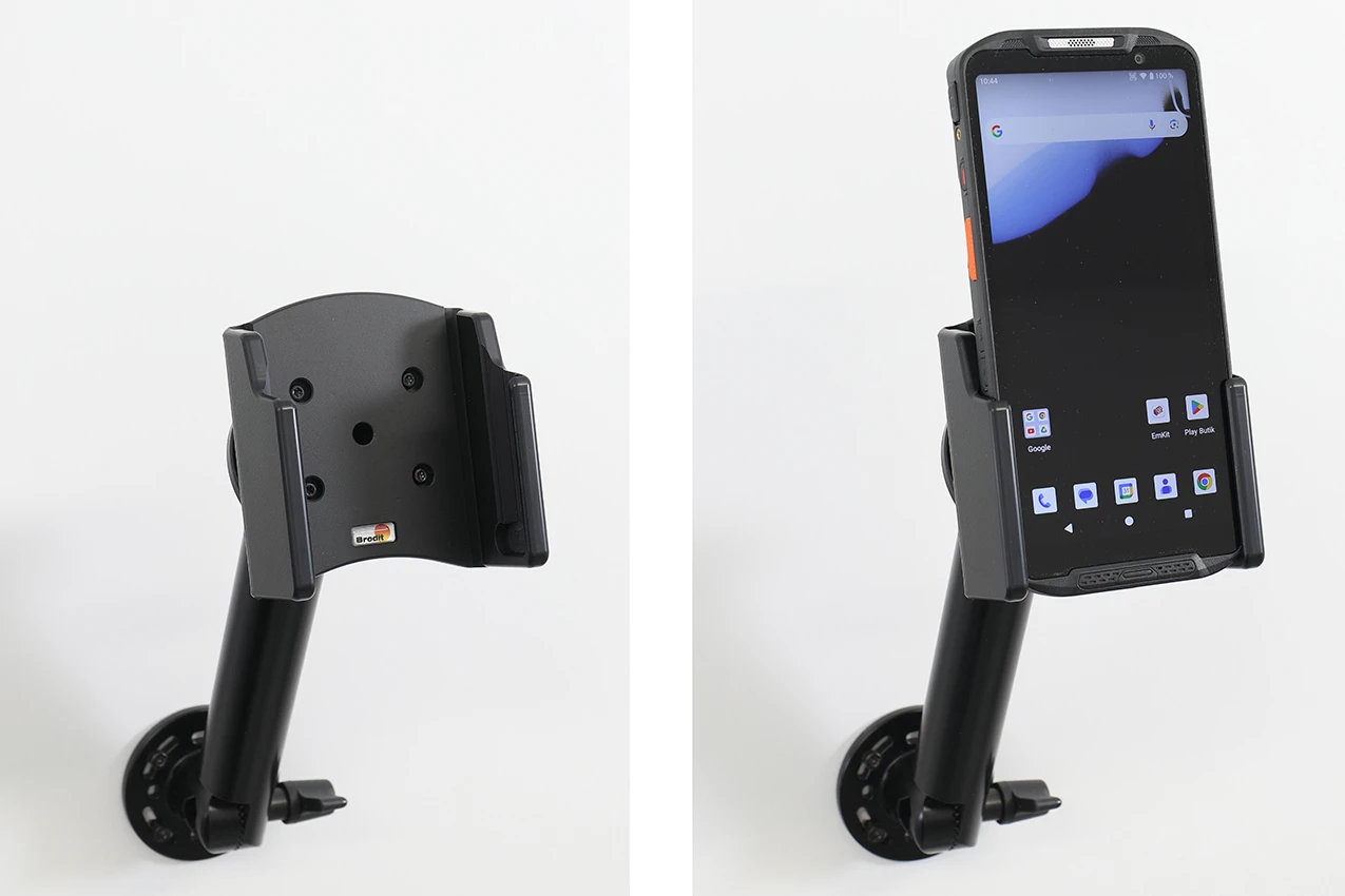 The holder is equipped with a tilt swivel so you can easily adjust the angle for better viewing, or switch between portrait and landscape mode. Tilts 17° and swivels 360°. Mounting plate 42x50 mm with 4 mm AMPS-holes. Made of high grade black ABS/Acetal plastic. Color: black. Made in Sweden. Attach onto a ProClip Mounting Platform or a Pedestal Mount.