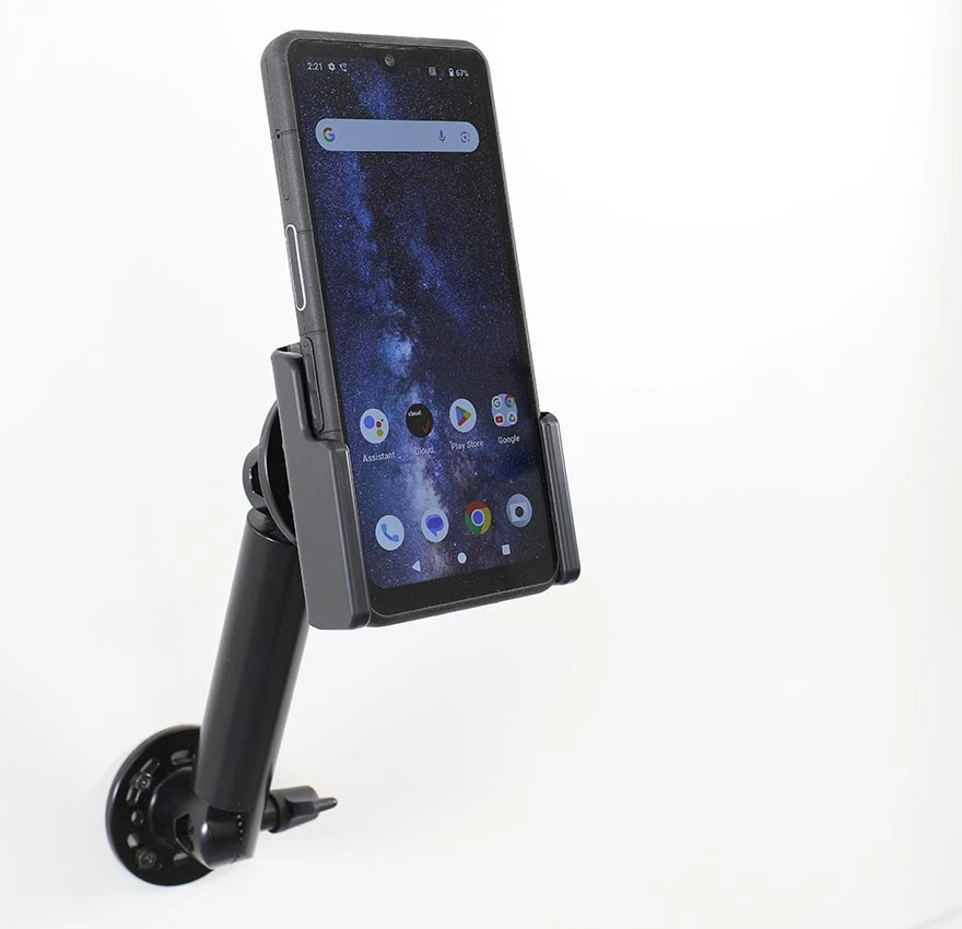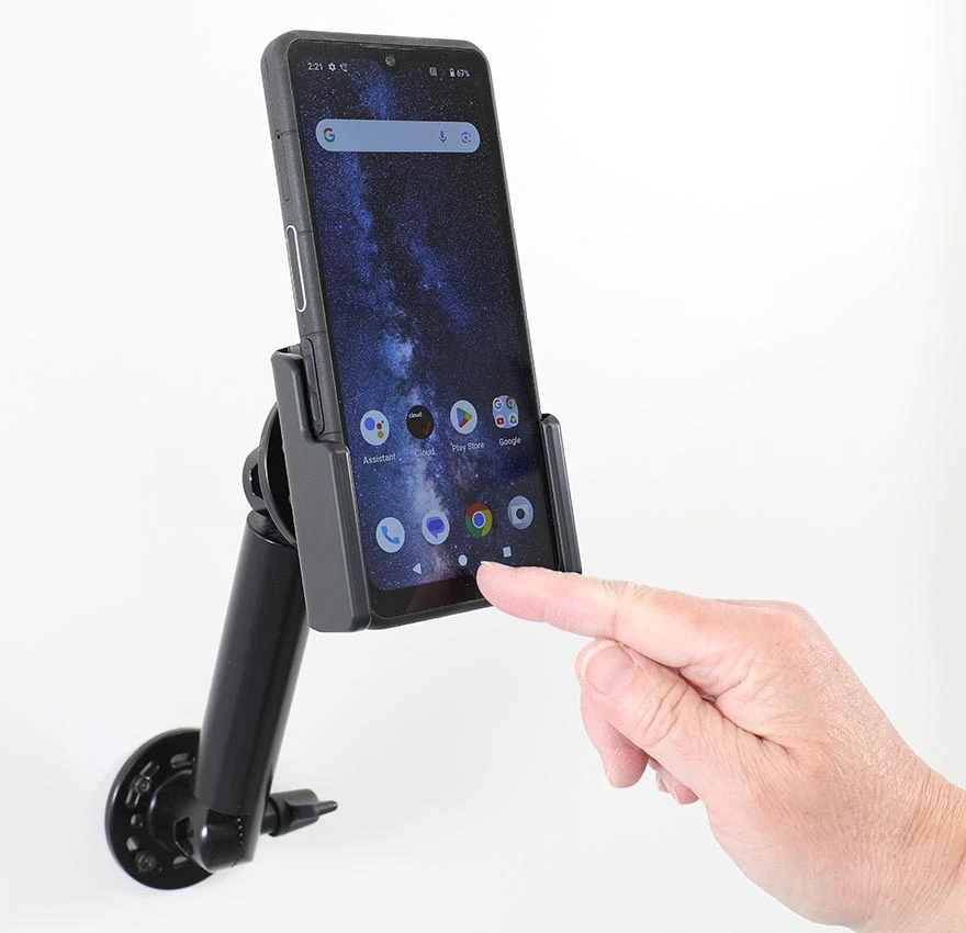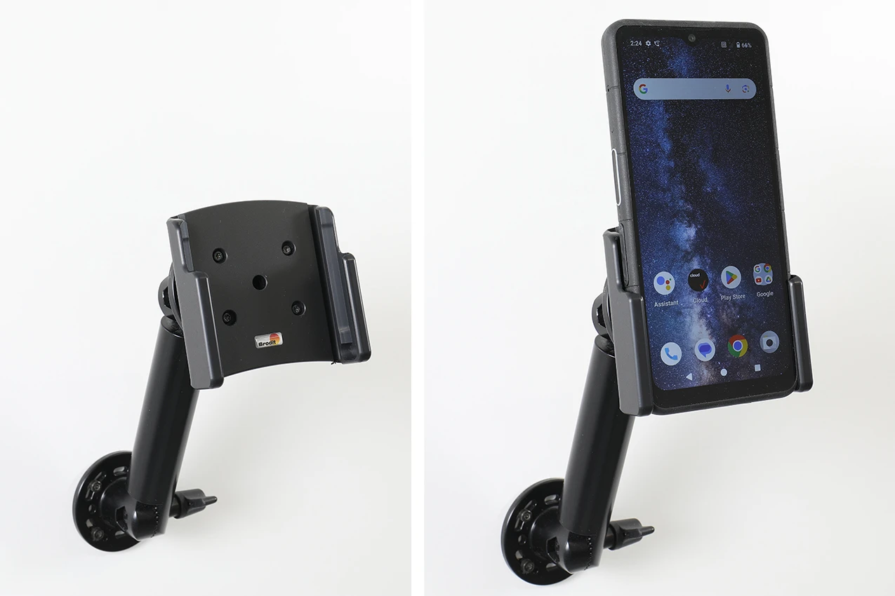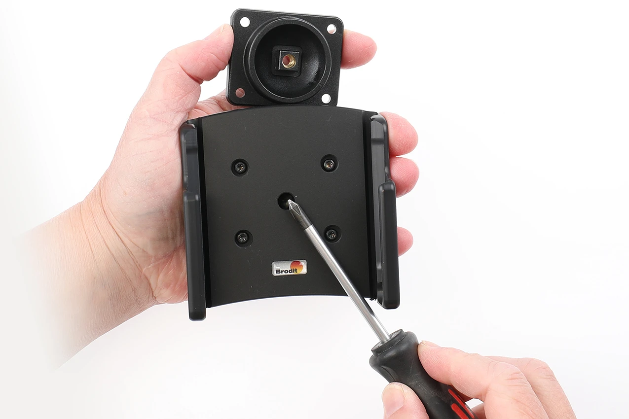 The holder is equipped with a tilt swivel so you can easily adjust the angle for better viewing, or switch between portrait and landscape mode. Tilts 17° and swivels 360°. Mounting plate 42x50 mm with 4 mm AMPS-holes. Made of high grade black ABS plastic. Color: black. Made in Sweden. For easy and optimal installation, attach the holder onto a custom ProClip Vehicle Mount, a Pedestal Mount or attach it directly to any surface.