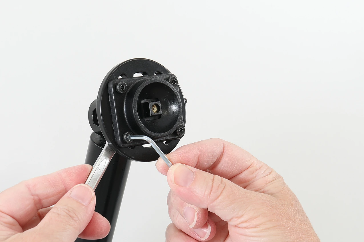 Place the holder over the attaching plate so the screw fits in the hole in the tilt swivel and screw it into place. Tighten the screw so the holder is firmly in place, but still can be adjusted.