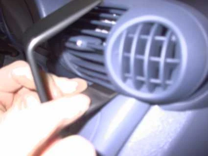 Press the thin end of the enclosed gap opener into the gap between the dashboard and the frame surrounding the air vent to widen the gap. Press it into the gap above the left side of the air vent.
