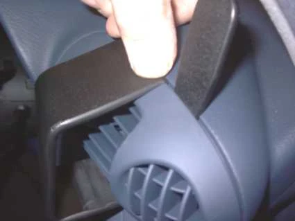 Peel off the adhesive tape covers on the ProClip. Press the lower part of the ProClip into the gap between the dashboard and the frame surrounding the air vent.