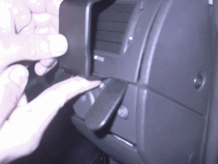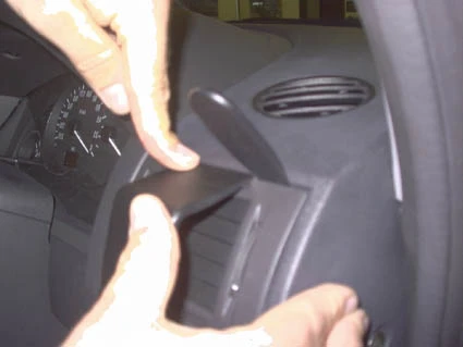Press a gap opener into the gap between the air vent frame and the dashboard. Hook the upper part of the ProClip into the gap next to the gap opener. Press downwards on top of the ProClip so it goes into the gap. Pull out the gap opener.