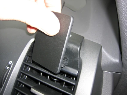 Hook the angled edge on the lower part of the ProClip under the fixed part of the air vent, as shown in picture.