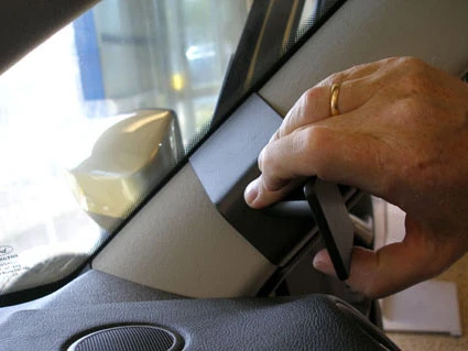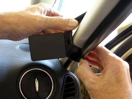 Hook the angled edge on the lower part of the ProClip behind the panel, under the rubber.